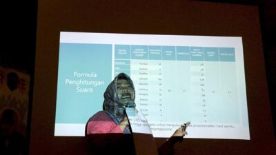 7 November 2016100Direktur Eksekutif Perludem Titi Anggraini menyampaikan tabel formulasi penghitungan suara dalam diskusi pembahasan Rancangan Undang-Undang (RUU) tentang Penyelenggaraan Pemilihan Umum ...Penataan Ulang Dapil