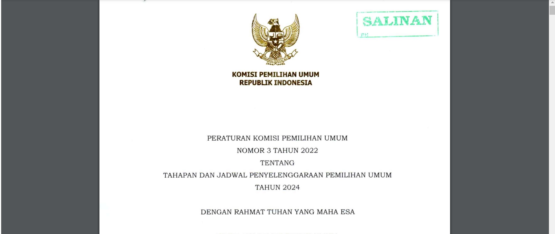 Read More »PKPU 6/2022 Penataan Dapil dan Alokasi Kursi DPRD Kabupaten/Kota