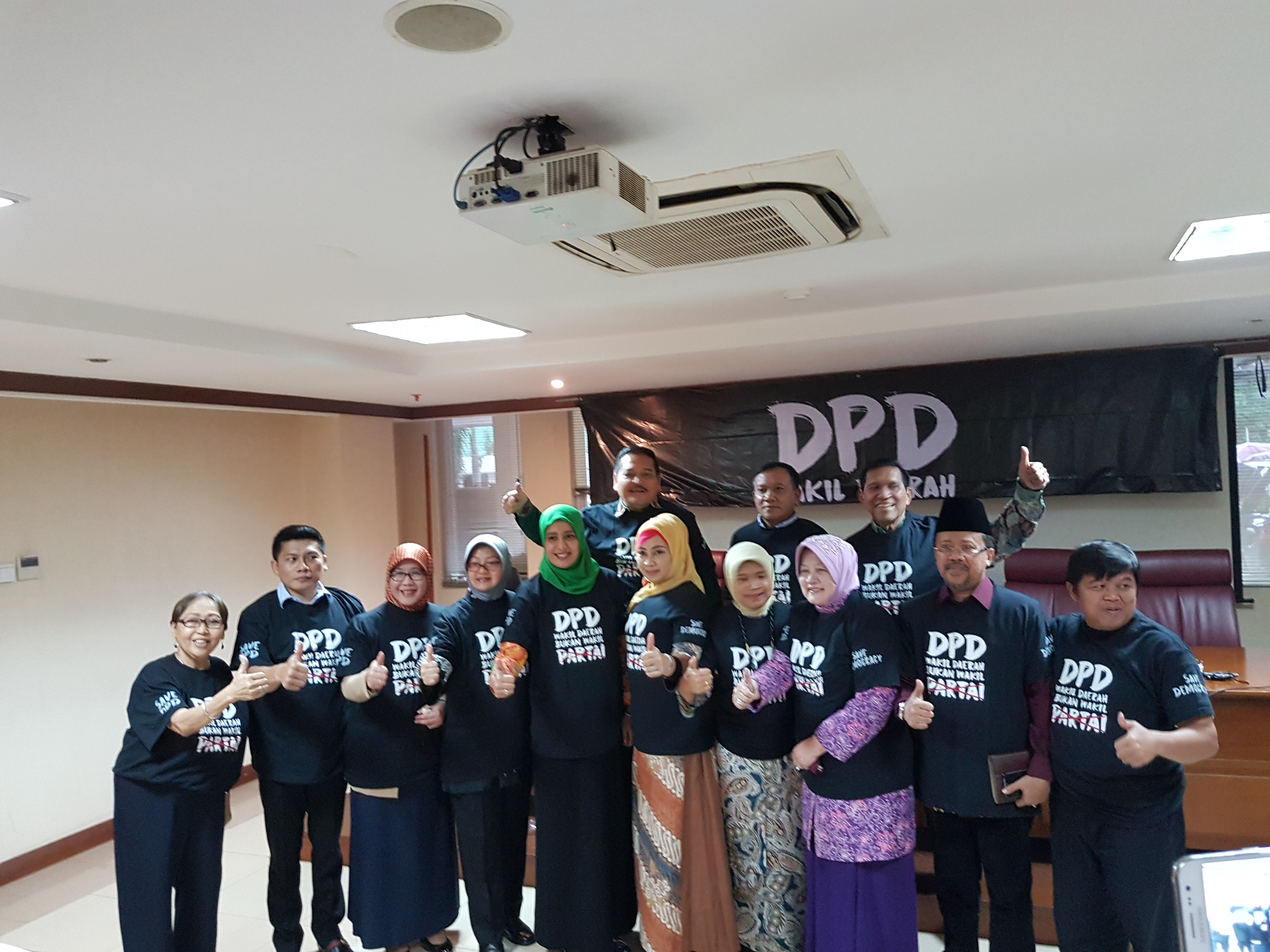 Tiga belas anggota Dewan Perwakilan Daerah (DPD) menemui Koalisi Masyarakat Sipil untuk Penegakkan Citra Parlemen di Senayan, Jakarta Selatan (3/4). Anggota menerima aspirasi Koalisi dan menyatakan patuh terhadap putusan Mahkamah Agung (MA) atas judicial review (JR) Tata Tertib (Tatib) No.1/2017. …