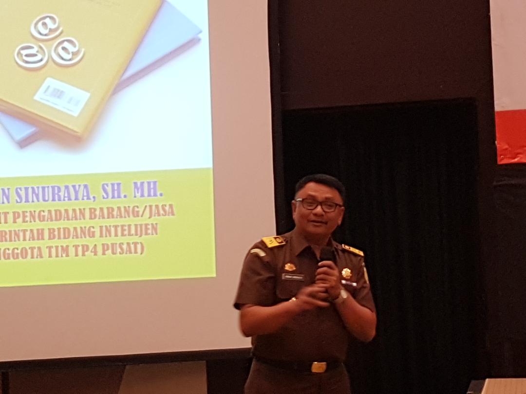 Kepala Sub bidang Direktorat Barang/Jasa Pemerintahan bidang Intelijen dan Anggota Tim Pengawal dan Pengamanan Proyek-Proyek Pemerintah (TP4) Kejaksaan RI, Irwan Sinuraya, memberikan penjelasan mengenai pengawalan dan pengamanan untuk proses pengadaan logistik Pemilihan Kepala Daerah (Pilkada) Serentak 2018 dan Pemilu 2019. …