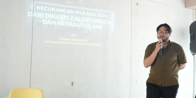 “Di antaranya ada Sumatera Utara, Jawa Tengah, Banten, dan Kalimantan Timur. Di Banten misalnya, ada dinasti Atut dan Jayabaya, yang membuat satu daerah akan diperebutkan oleh dua dinasti politik,” kata Peneliti Themis Law Firm, Hemi Lavour, pada diskusi “Kecurangan Pilkada 2024: Dari Dinasti, Calon Tunggal, dan Netralisasi ASN” pada Selasa (13/7).